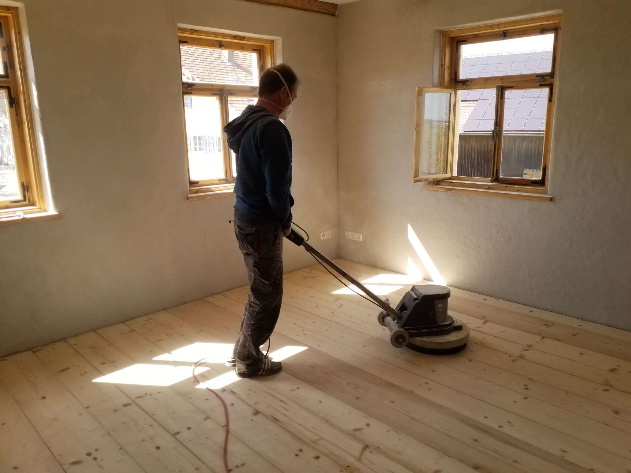 Rechts: Zwei Tage lang an einem einzigen Zimmerboden schleifen. Das ist neuer Negativrekord.