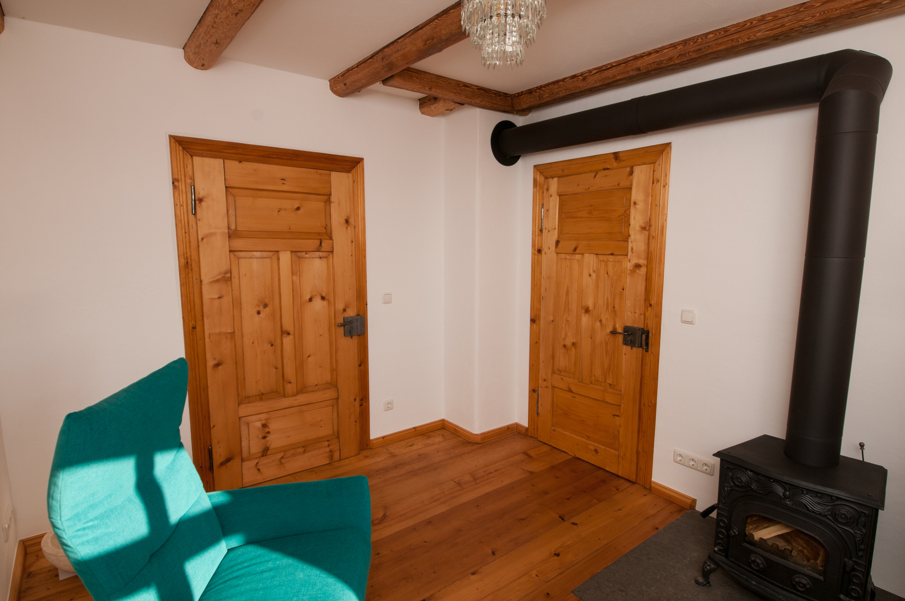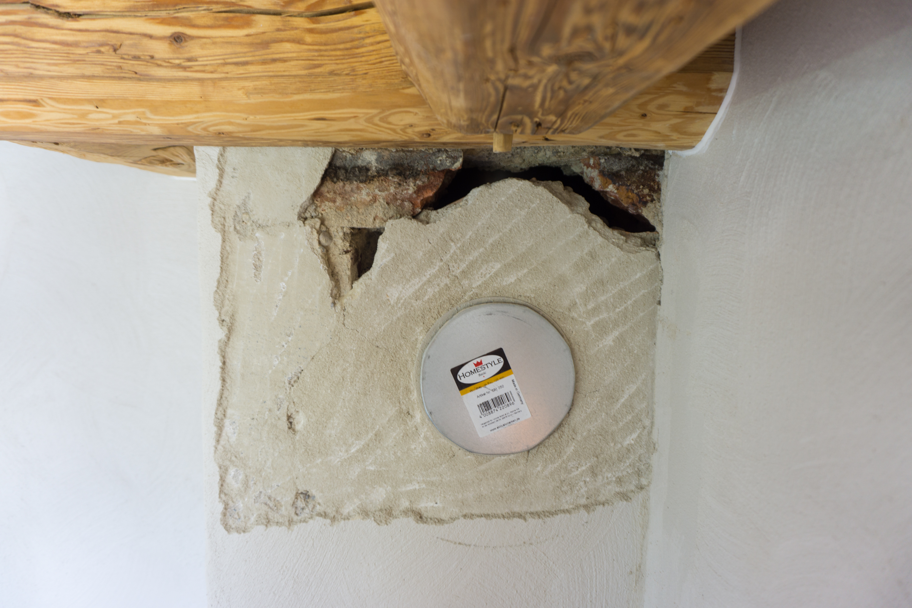 Das erste Zimmer wurde zwischenzeitlich gestrichen. Auch wenn es schon ein paar Wochen her ist und mir hier einfach die Zeit zum bloggen gefehlt hat: Simones Zimmer ist endlich weiß, nachdem zuvor etwas handwerklicher Murks in Ordnung gebracht wurde.Zu Anfang der Heizperiode fing auf einmal der Putz rund um den Kaminanschluss an zu reißen und in großen Brocken herunterzufallen. Offensichtlich haben die Kaminbauer, die uns vor etwas über zwei Jahren das Edelstahlrohr in den Schornstein gesetzt haben, auf Kaminmörtel verzichtet und statt dessen normalen Mauermörtel genommen, der nun durch die Wärmezufuhr um satte 3-4 Millimeter geschrumpft ist und den Abzweig nicht mehr fest im Mauerwerk hielt. Darüber hinaus haben die Spezialisten die Edelstahl-Segmente so fest ineinander geschoben, dass sie sich nicht ausdehnen konnten, ohne den ohnehin schwach befestigten Abzweig endgültig aus dem Mauerwerk zu hebeln.