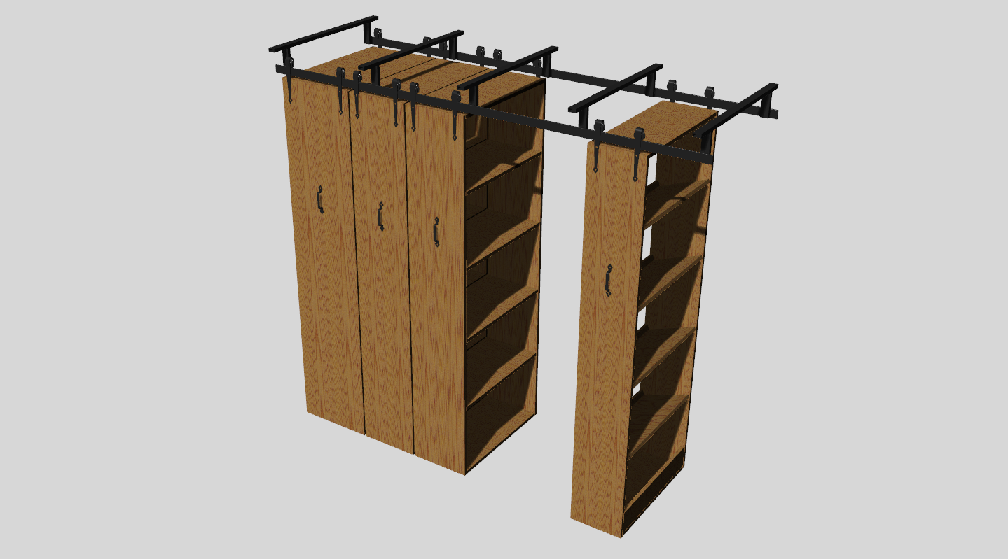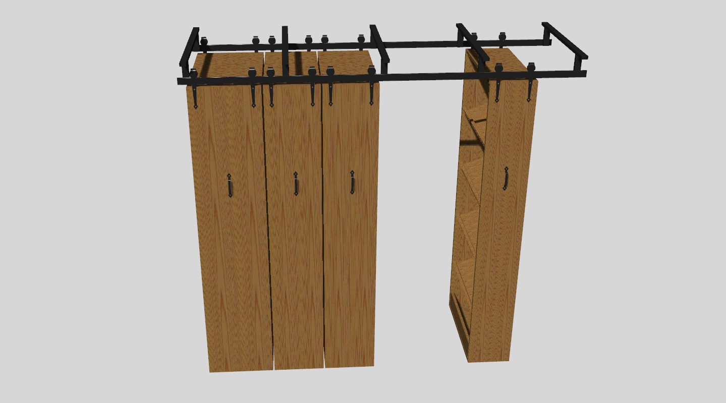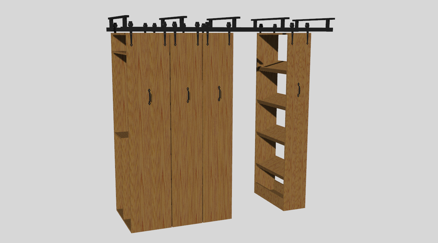 Die Schiebeelemente lassen sich hingegen in unterschiedlichen Breiten fertigen. Elemente für liegende Kleidungsstücke können auf diese Weise auch 30 oder 35 Zentimeter schmal sein. So finden mehr Elemente in den Schienen Platz. Unsere geplanten 5 Elemente haben eine Gesamtbreite von etwa 1,80 Meter, entsprechen dank ihrer Tiefe von knapp 80 Zentimetern aber einer Schrankbreite von 4 Metern.